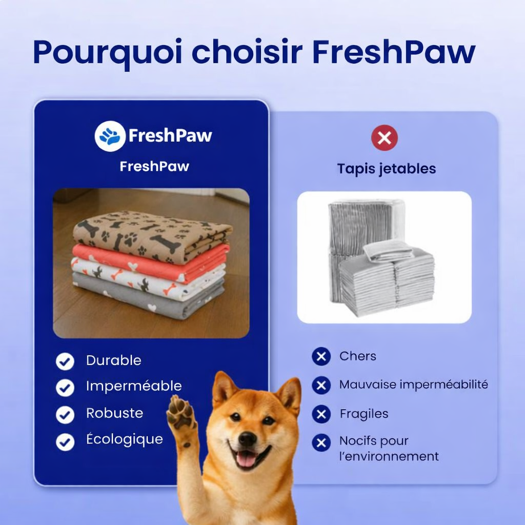 FreshPaw n'est pas un simple tapis pour les besoins. C'est une solution complète qui résout tous les problèmes des alèses jetables.